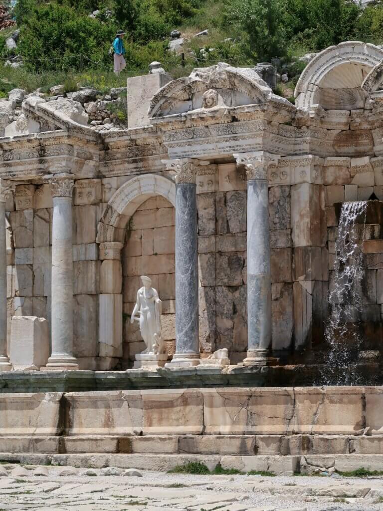 Die archäologische Stätte Sagalassos ist bekannt für seine wiederaufgebaute Brunnenanlage aus römischer Zeit. Die Stadt in der Bergen bietet noch viel mehr Sehenswertes und einen grandiosen Ausblick.