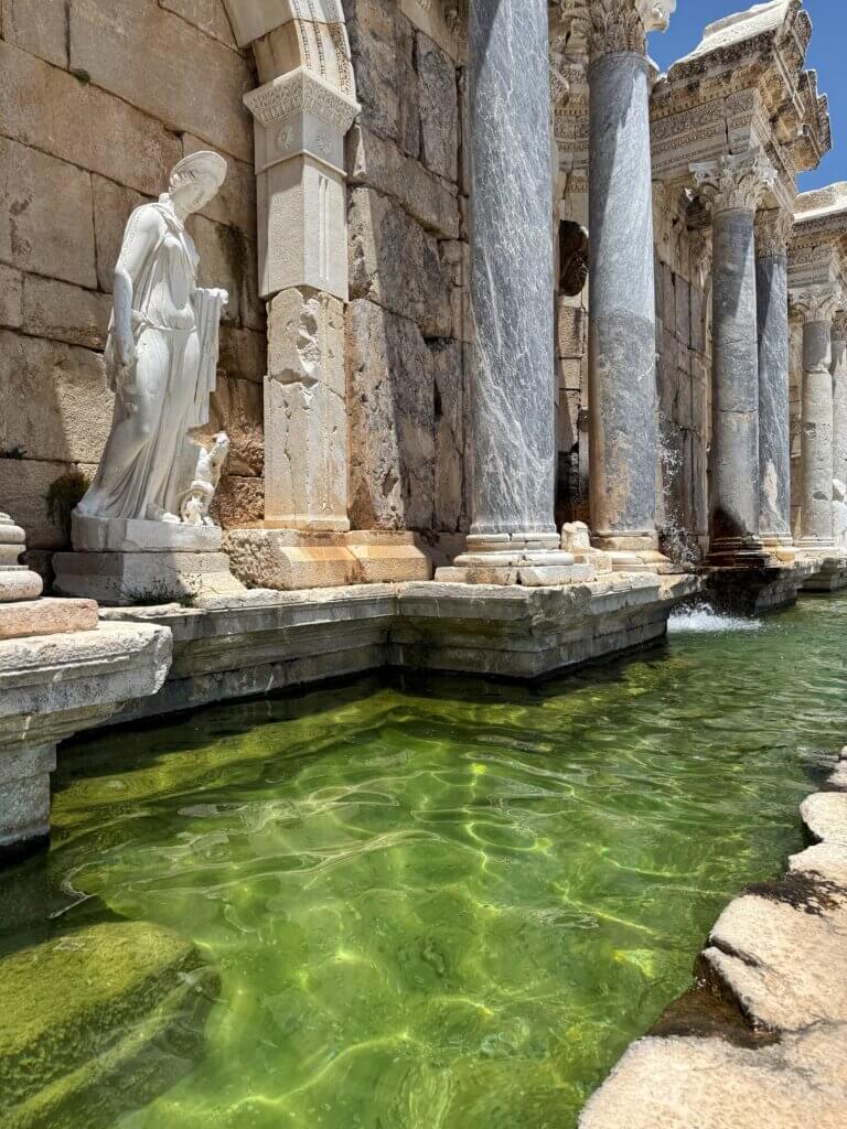 Ein weiteres Nymphäum auf der Unteren Agora wurde in severischer Zeit gebaut. Für heutige Besucher geben die beiden Brunnen schon einmal einen Vorgeschmack auf das dritte Nymphäum und Wahrzeichen der Archäologischen Stätte: den wiederaufgebauten Brunnen aus antoninischer Zeit auf der Oberen Agora.